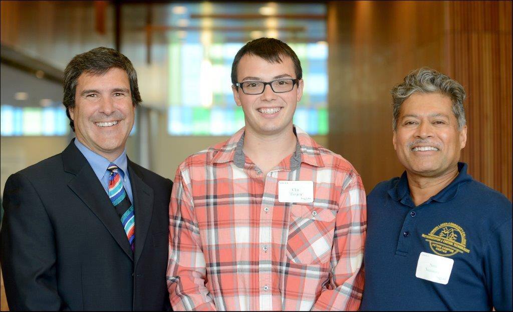 Instrumentation and control technologies major Clay Tietjen of Penn Yan received the FAME award of $1,000. He is shown with FAME's Rick Plympton '83, chief executive officer of Optimax Systems, Inc., on the left, and on the right, Sam Samanta, professor of physics at FLCC.